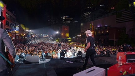 Brad Paisley headlined Nashville’s “Let Freedom Sing!” July 4 event in downtown last night playing for a crowd of more than 250,000 fans. Brad’s fast pacing, 90+ minute concert, which was slightly delayed due to a quick passing storm, included all of his many hits as well as his new song “So Many Summers.” Special guests included Dan Tyminski, Jerry Douglas, Kelleigh Bannen and Joe Bonamassa. The event featured one of the country’s largest July 4th fireworks show, synchronized to live music from the GRAMMY-winning Nashville Symphony.