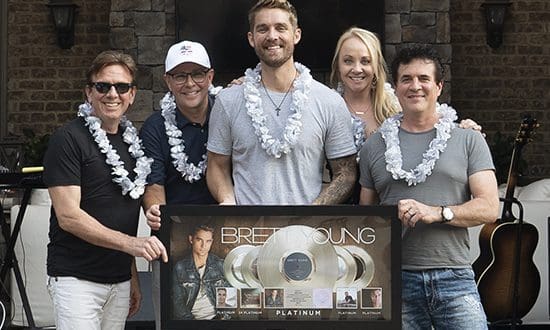 ACM New Male Vocalist of the Year Brett Young celebrated his ongoing Platinum success with friends, family and industry supporters including BMLG President and CEO Scott Borchetta and BMLG Records President Jimmy Harnen last night just outside of Nashville. The hitmaker added his debut self-titled album and Top 5-and-rising single “Mercy” to a bolstering list of accolades, both crossing the 1 million mark in total consumption. The Platinum milestones follow Young’s first three singles: “Sleep Without You” (Platinum), “In Case You Didn’t Know” (3X Platinum) and “Like I Loved You” (Platinum). Brett performed the compelling tunes and offered a surprise preview of the first single off his upcoming sophomore album, “Here Tonight,” for his special guests.