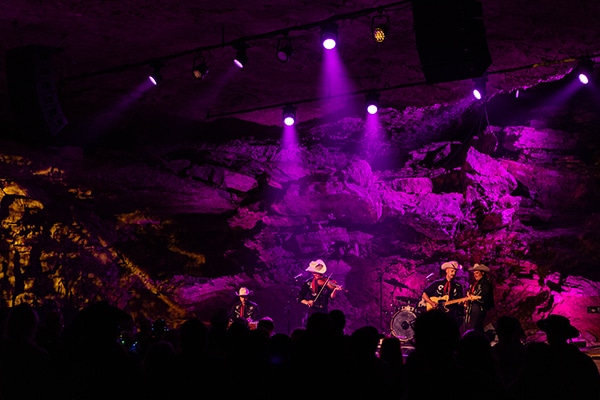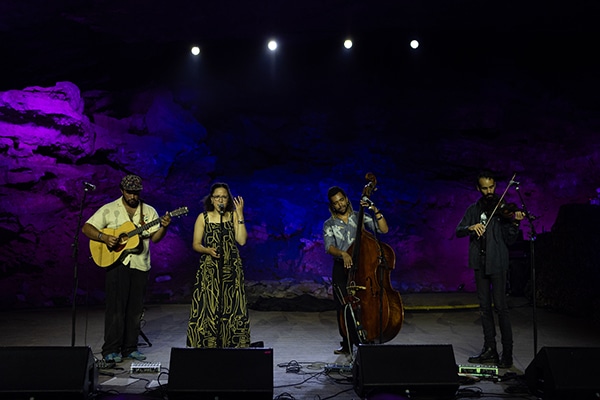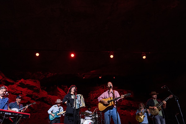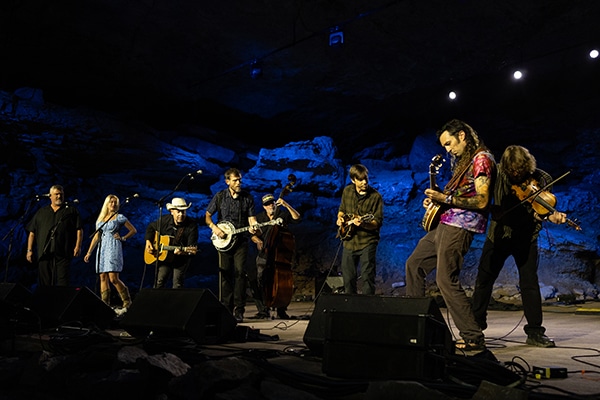 Jim Lauderdale and his powerhouse band, The Game Changers, delivered one of the festival’s standout sets. Lauderdale’s timeless voice and joyful stage presence paired perfectly with his band’s stunning musicianship, earning thunderous applause from the crowd. Dan Tyminski was another favorite, his soulful picking and vocals echoing beautifully through the cave’s natural acoustics.