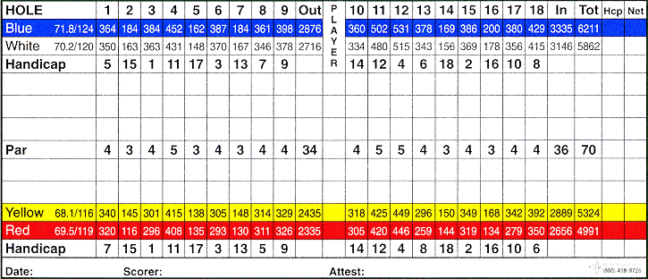 The 18-hole Country Hills Golf Course facility in Hendersonville, Tennessee features 6,174 yards of golf from the longest tees for a par of 70.