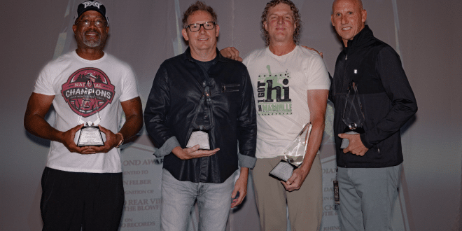With the Summer Camp with Trucks Tour marking the first full outing in five years for Hootie & the Blowfish, the Nashville stop at Bridgestone Arena last Saturday, July 27, was cause for extra celebration. Having recently been presented with a plaque celebrating 22x Platinum certification during their appearance on ABC’s “Good Morning America,” band members Darius Rucker, Mark Bryan, Dean Felber and Jim “Soni” Sonefeld were joined by the Recording Industry Association of America’s Chief Policy Officer Morna Willens ahead of this weekend’s show for a special presentation of the RIAA’s prestigious Double Diamond trophies. The honor solidifies the band’s debut album, Cracked Rear View, among the top 10 best-selling albums in all of music history.