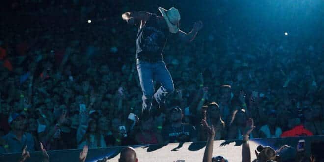 With an opening video welcome from the New England Patriots organization that included Robert and Jonathan Kraft, head coach Bill Belichick, quarterback Tom Brady, tight end Rob Gronkowski, wide receiver Cordarelle Patterson, offensive linemen Marcus Cannon and David Andrews, plus Patriots Broadcast Analyst Scott Zolak and members of the Massachusetts State Police Mounted United, the greater Boston area was all in for Kenny Chesney’s 18th and 19th shows at Gillette Stadium. With two night attendance of 121,714 – as Chesney’s team worked to make more tickets available this morning – the 8-time Entertainer of the Year not only broke his own attendance record, but he surpassed the million ticket mark by over 90,000.