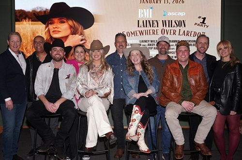 BMI brought the celebration to Music Row this week as Lainey Wilson was honored for her ninth No. 1 hit, “Somewhere Over Laredo,” during a packed gathering Tuesday night (Jan. 13) at BMI’s Nashville office. More than 300 industry friends turned out to toast the chart-topper, which is also up for Best Country Song and Best Country Solo Performance at the upcoming 68th GRAMMY Awards.