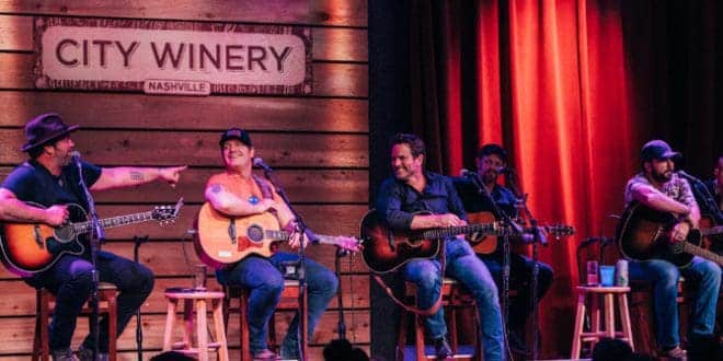 On Sunday, Lee gathered friends Charles Esten, Jerrod Niemann, Tyler Farr, Tim Montana, Lucas Hoge, Nick Norman along with Folds of Honor representatives, Major Ed Pulido and Ginger Gilbert Ravella for the Guitar Pull at Nashville’s City Winery. The event — sponsored by Diamond Coach and American Born Whiskey — was sold out.