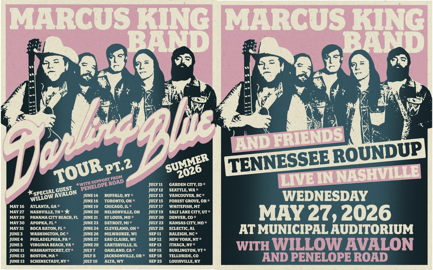 GRAMMY-nominated country-Americana standout Marcus King is hitting the road this summer with his powerhouse Marcus King Band for the newly announced Darling Blue Pt. 2 Tour, a 39-city trek across the United States and Canada. Nashville fans will have a chance to catch the electrifying guitarist live when the tour rolls into Nashville Municipal Auditorium on May 27, 2026 for a special Marcus King Band and Friends hometown-style performance.