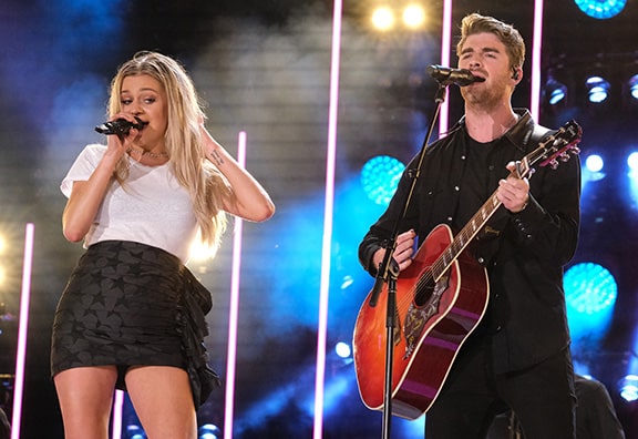 Kelsea Ballerini and Andrew Taggart of The Chainsmokers onstage at the 2019 CMA Fest held at Nissan Stadium on June 6, 2019 in Nashville, TN.