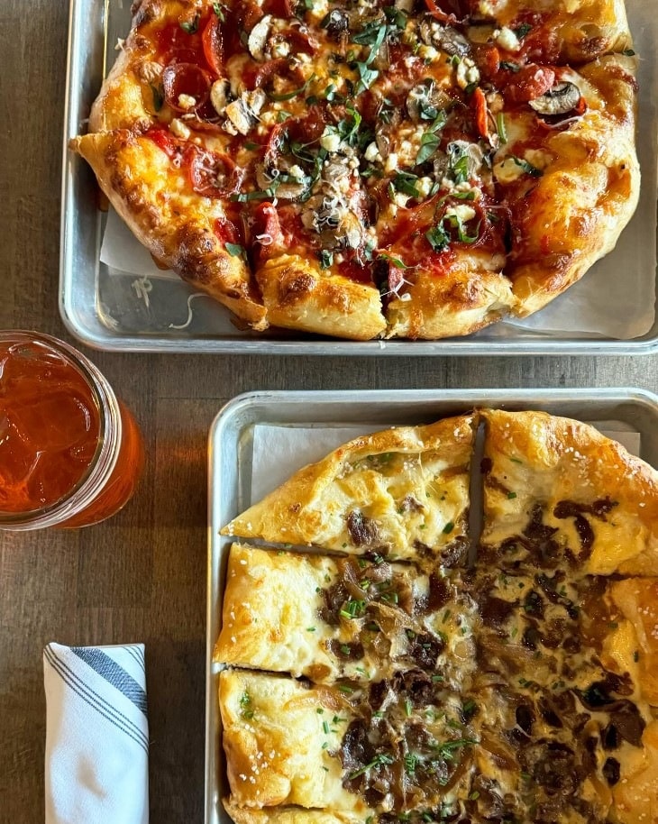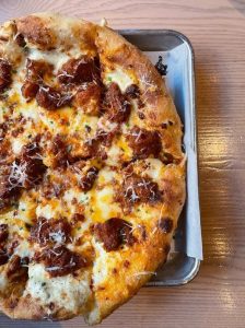Spicy Sausage Pizza: For pizza lovers, the Spicy Sausage Pizza is a standout that packs a punch of bold flavors. This pizza features house-made hot Italian sausage that adds a kick of heat, perfectly balanced by the sweetness of grilled onions. Topped with a rich red sauce, Mozzarella, Parmesan, and a sprinkle of fresh herbs, the pizza is baked to a perfect crisp, with a slightly chewy crust that holds up well under the layers of savory ingredients. It’s a great option for those who enjoy a bit of spice and a lot of flavor in their pizza.