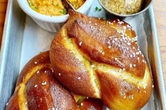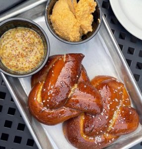 Stillery Pretzels: A popular choice for sharing, the Pretzels at The Stillery are semi-soft pretzel bites that are baked to a golden brown, providing a perfect balance of soft, chewy interior and a slightly crisp exterior. Served with a side of warm, gooey queso, these pretzel bites are perfect for dipping and snacking, making them an ideal appetizer to enjoy with friends over a cold beer or craft cocktail.