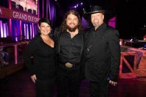 Earlier in the night, newcomer Dillon Carmichael was introduced for his official Opry debut by his Opry member uncle Eddie Montgomery of Montgomery Gentry. Carmichael– whose mother Becky joined him on background vocals– had once worked in the Opry’s security department, but had not allowed himself to step inside the Opry’s famed circle of wood center stage until tonight’s official debut.