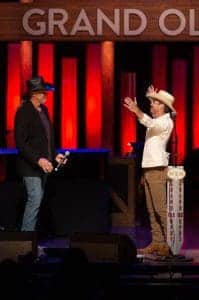 The show that made country music famous made for a number of life and career milestones tonight during two star-packed shows. Among the excitement on stage and backstage: Dustin Lynch was invited to become the newest member of the Opry family by Opry member Trace Adkins; Adkins celebrated his 15th Opry Anniversary; Opry member Eddie Montgomery introduced his nephew Dillon Carmichael for his Opry debut appearance, with Carmichael’s mom performing background vocals; and longtime Opry Entertainment Group President Steve Buchanan celebrated his retirement with remarks by Opry member Vince Gill along with friends, family and Opry members during a backstage reception.