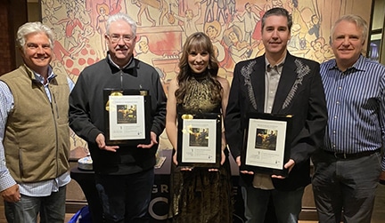 Just before Darin & Brooke Aldridge walked on stage for their Friday night Grand Ole Opry appearance, they were surprised backstage by their record label with three plaques acknowledging their #1 album and single successes of 2021, for their album This Life We’re Livin’ and for singles “Blue Baby Now” and “He’s Getting Me Ready” (with the Oak Ridge Boys). The husband and wife duo just released a new single and video, “Grand Ole Circle,” a tribute to their beloved Opry. Watch above.